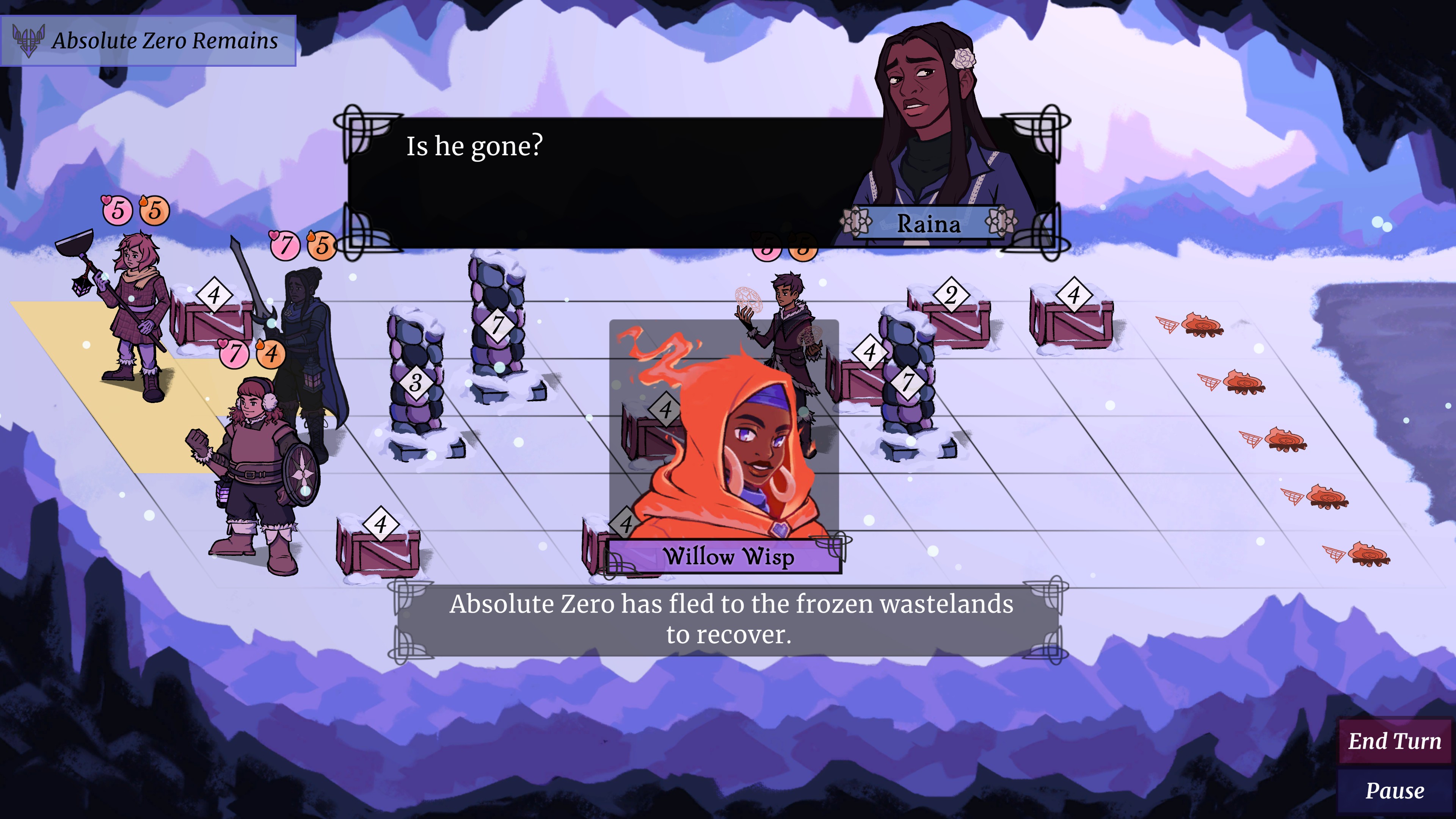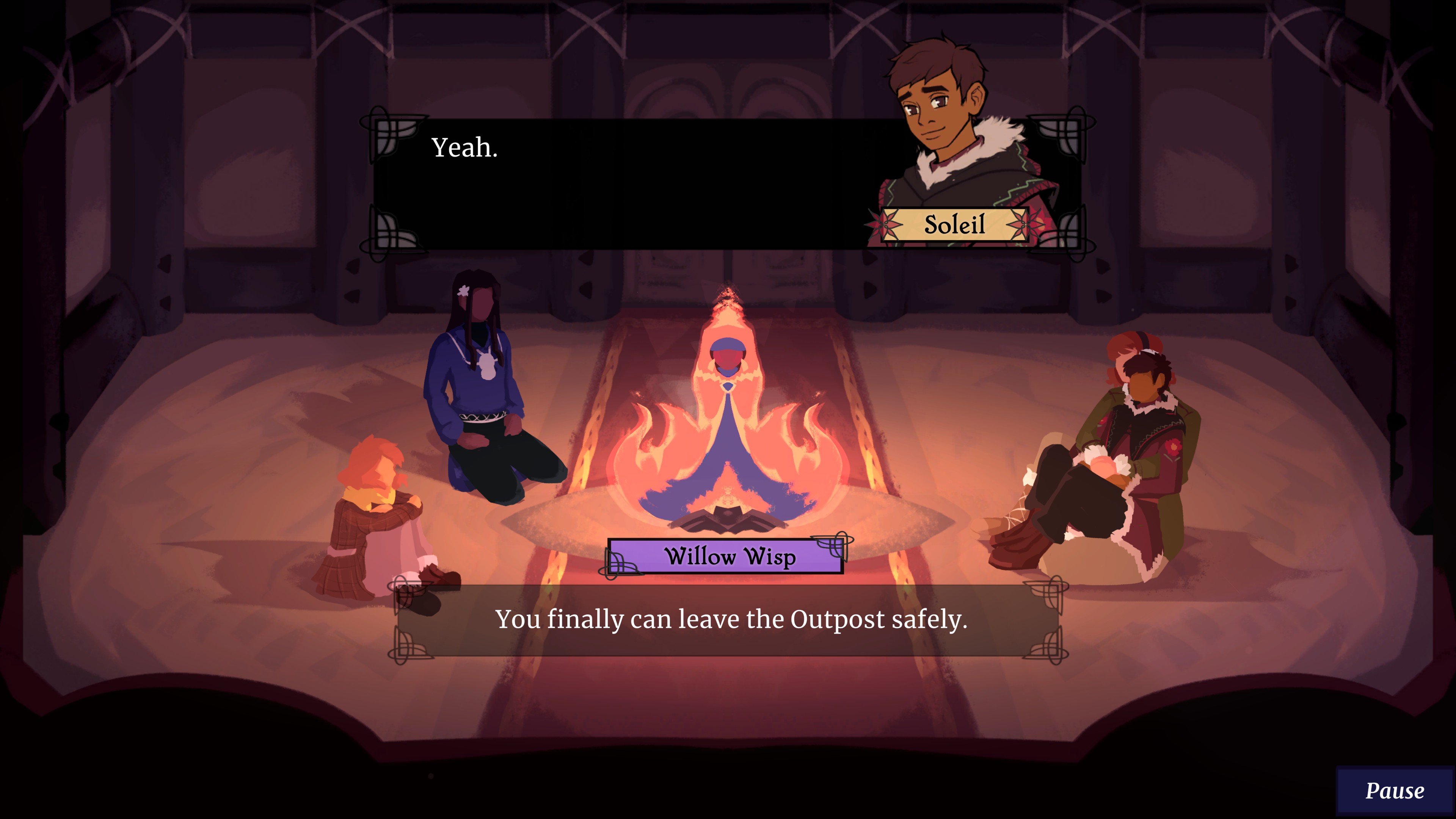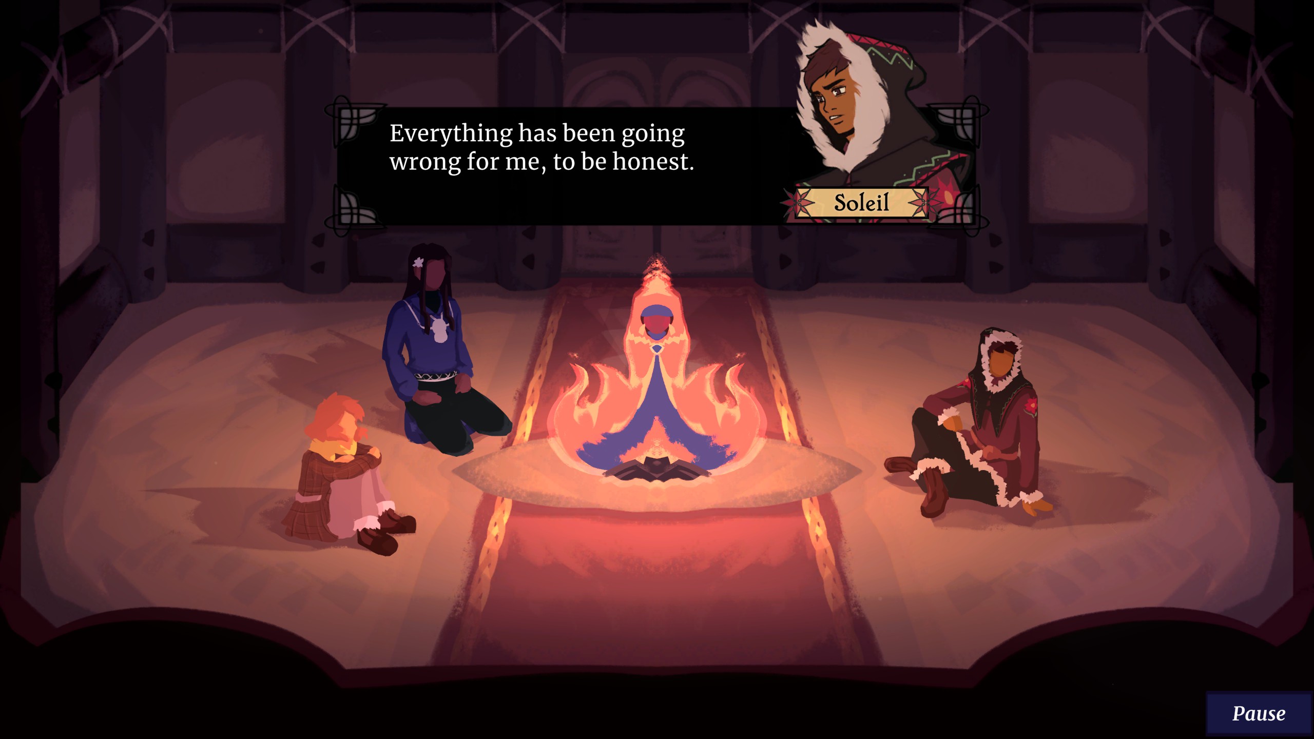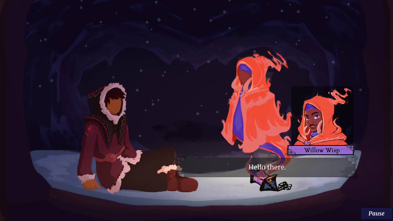 A 2D narrative-focused strategic RPG with visual novel elements. You play as Willow Wisp, a campfire spirit who guides a group of amateur adventurers in harnessing the warm magic of self love to fend off the Frost that surrounds them.