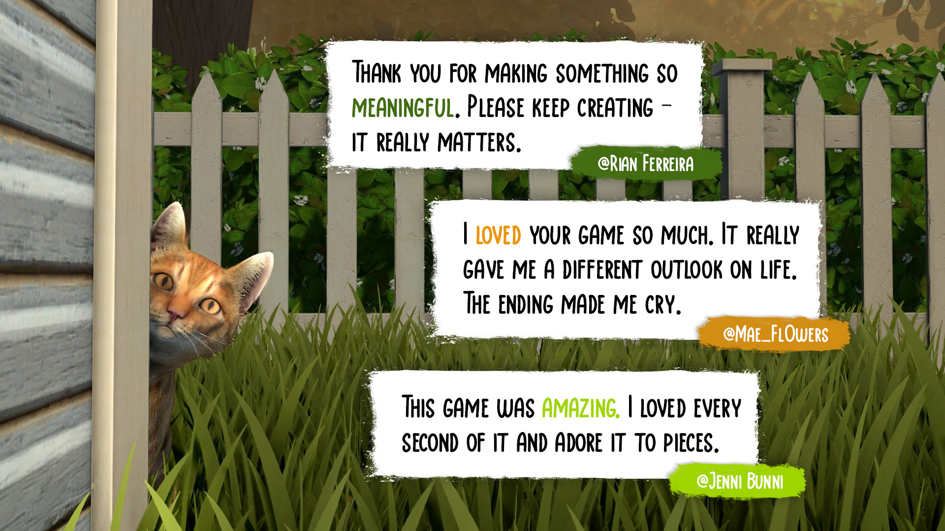 A poignant narrative-driven game about rejection, belonging and the meaning of home. It follows the story of a newly adopted shelter cat whose space in the home is taken by a copycat. Bring the tissues.