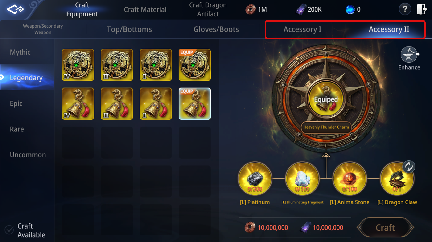 - New tabs ‘Accessory I’ and ‘Accessory II’ have been added under \[Craft > Craft Equipment].