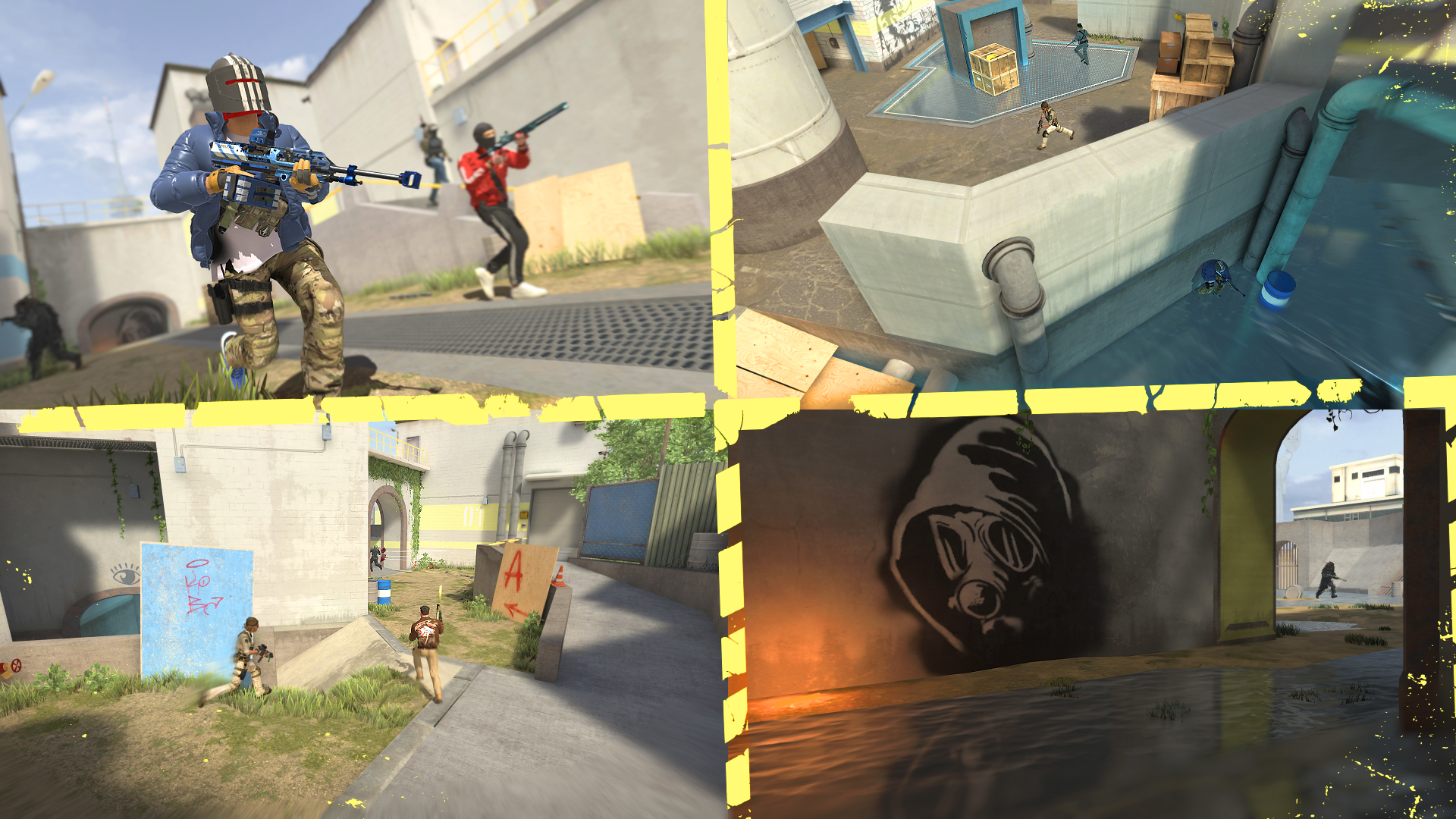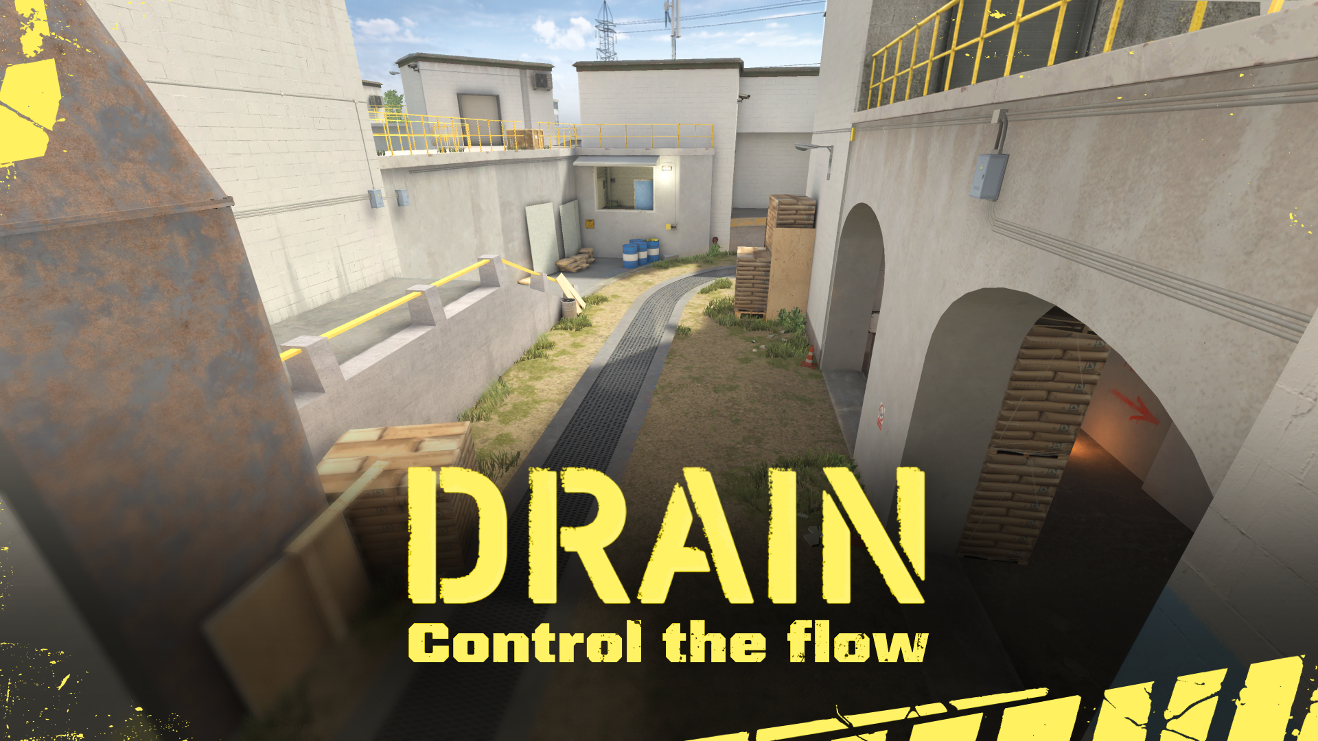 The Drain water purification plant becomes your battleground -- concrete treatment yards, pump platforms, and a curved drainage channel shaping every engagement. Secure the generators, clear the service corridors, and control the flow!