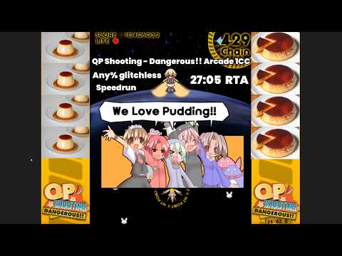 QP Shooting - Dangerous!! is a bullet hell type shoot’em’up starring the pudding-loving dog girl QP seen in 100% Orange Juice. Nothing can stand between QP and her pudding - not even difficulty options to reduce the experienced gamer to tears!