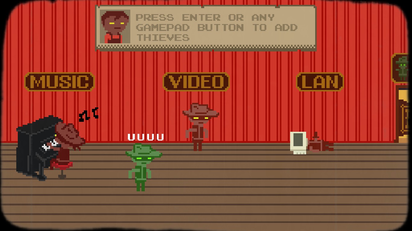 Thief Town is a local multiplayer stealth action game set in a pixel-perfect rendition of the Wild West. Lurk in the crowd, emulate non-player characters, and achieve backstabbing victory.