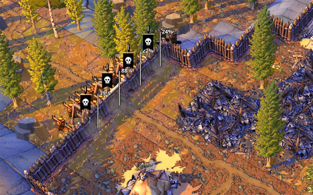 I've also added to the "movement cost" display layer the ability to test and display paths, which will give you as a player an idea of what the default path between 2 points in your fortifications would be, helping you design and test your defenses.