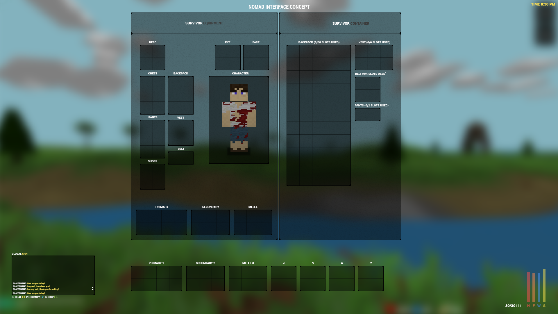 Try and survive in the world of Nomad. Build a base and protect it from raiding players. Scavenge food, weapons and medical supplies across the island. Team up with others and make a base. Make your mark on the world of Nomad.