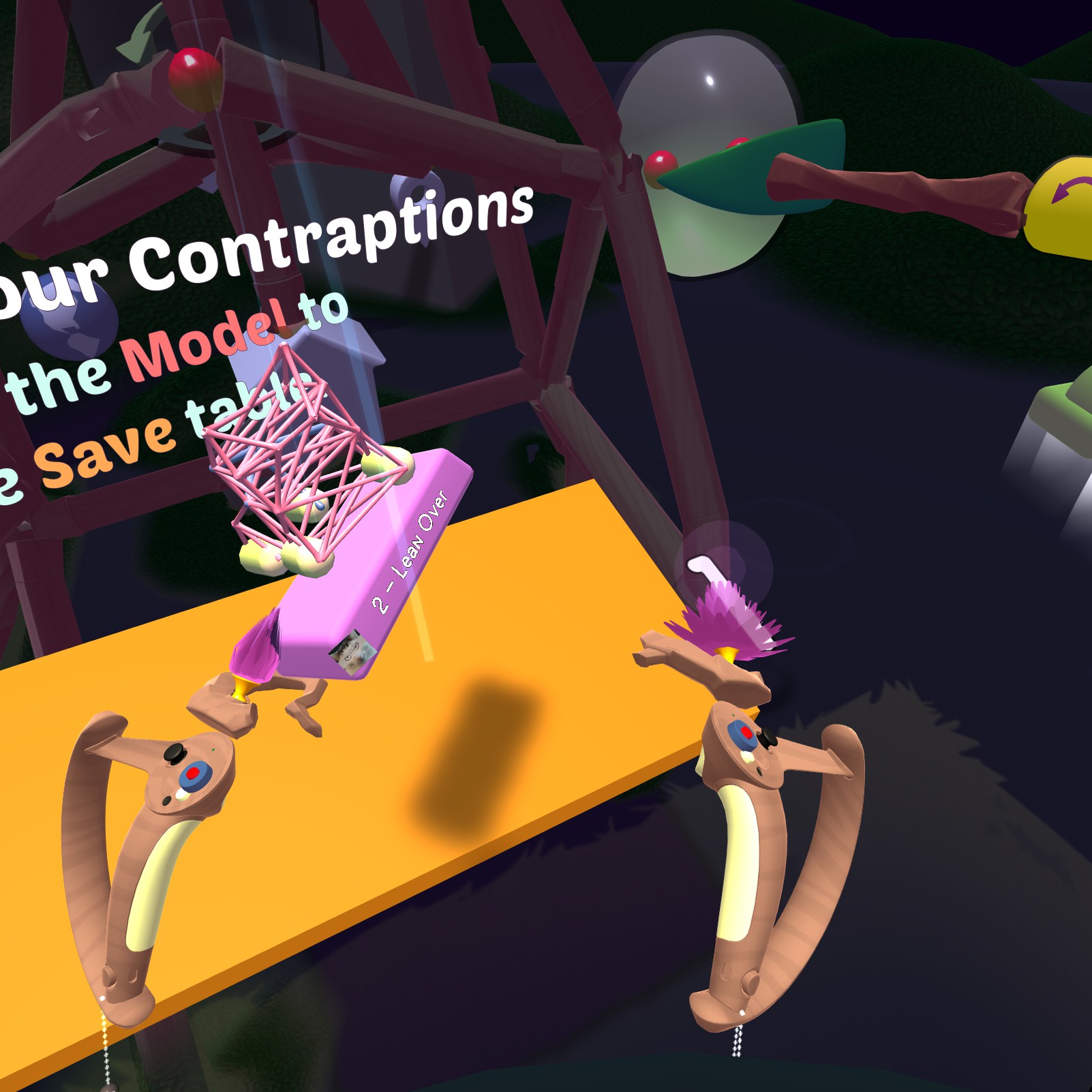 A surreal building game for VR. Create life-sized contraptions as tall as you can reach, then send them whirling, flinging, and trundling off to solve puzzles on the other side of a floating island. There are no right or wrong solutions, so bring your creativity.