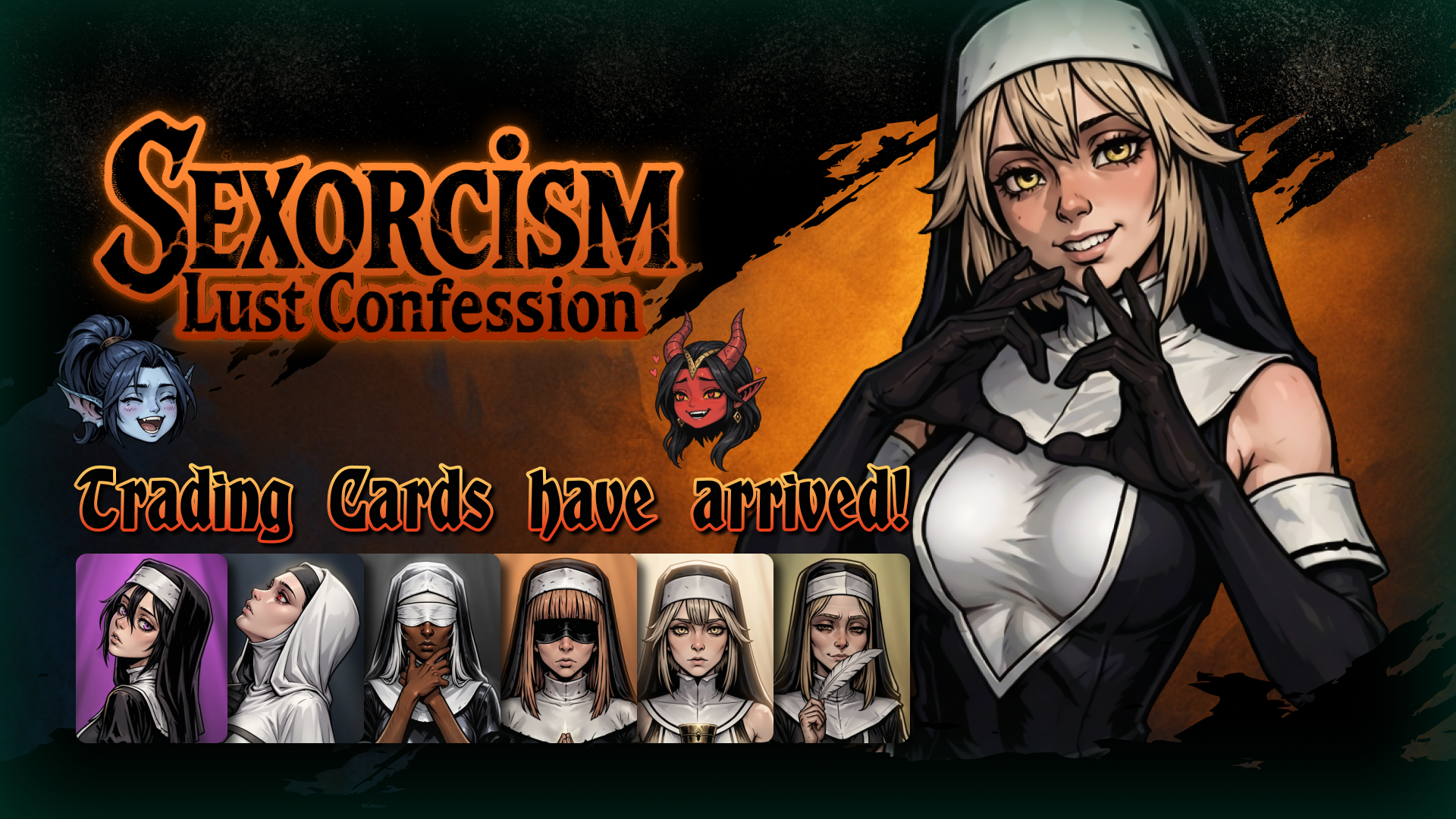 An explicit card battler where you fight corrupted nuns, strip them in combat, build your deck, strengthen your character, and unlock the hottest scenes as you progress.