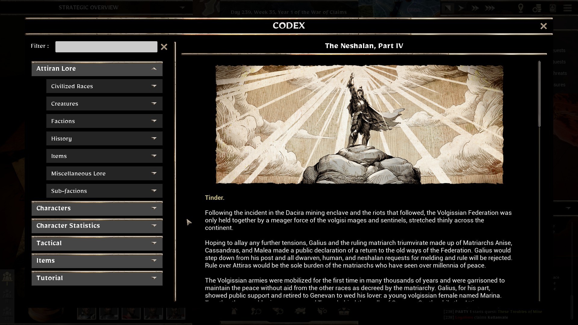 In this patch we’ve included a bit of the ancient history of Attiras and provided some additional lore context to the creatures, factions, and our main protagonists. We’ve also entered in a pretty comprehensive list of definitions and mechanical explanations of the many features and mechanics in the game along with the main tutorial slides from before. As mentioned, we will be adding on to it in the coming patches, and while we have our own backlog, your comments will help us prioritize what entries need to be put, edited, or elaborated on.