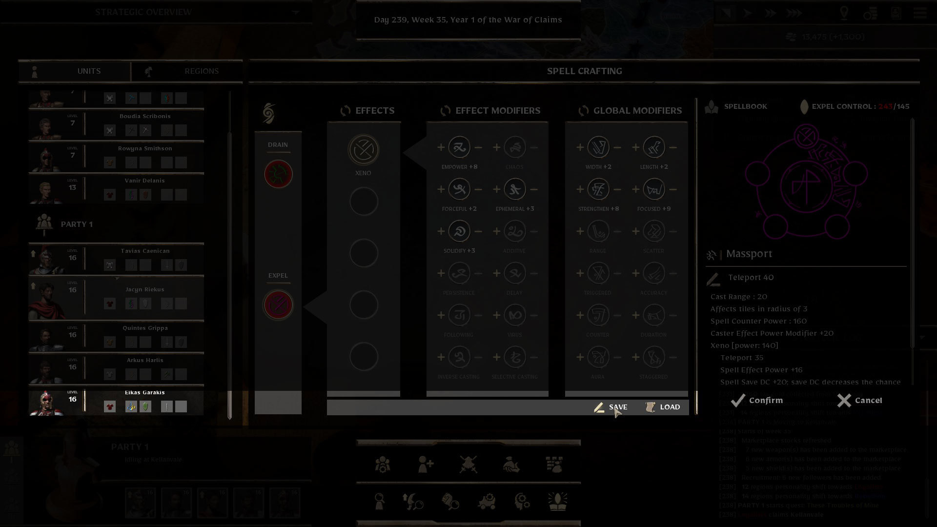 For returning players, you will note a slight change in the Spellcrafting UI with the Save/Load section being added on the bottom. Spells will need to be crafted and confirmed as before, once the name is confirmed, clicking the Save button with the spell selected will open the Spell Save menu. This will function just like the game’s Save/Load function from here on out. Loading a spell will overwrite the selected spell, and saved spells will only be available to the appropriate energy type. Once saved, spells can be used across multiple characters and campaigns as they will function much like a saved game. Happy crafting!