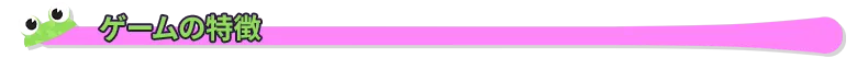 • メガガエル:食料を食べると、カエルは巨大化していく。たくさん食べると、とどろくような大声を持つ超巨大メガガエルに変身!下水道を華麗に転がり回ろう。