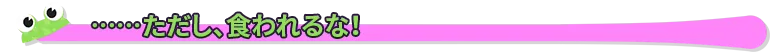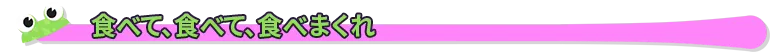 • カエルのタマゴ:ダメージを受けると、食べた食料を吐き出してしまう。空っぽの胃袋でダメージを受けると、弱々しいカエルのタマゴになってしまう。仲間に食料をもらって助けてもらおう。