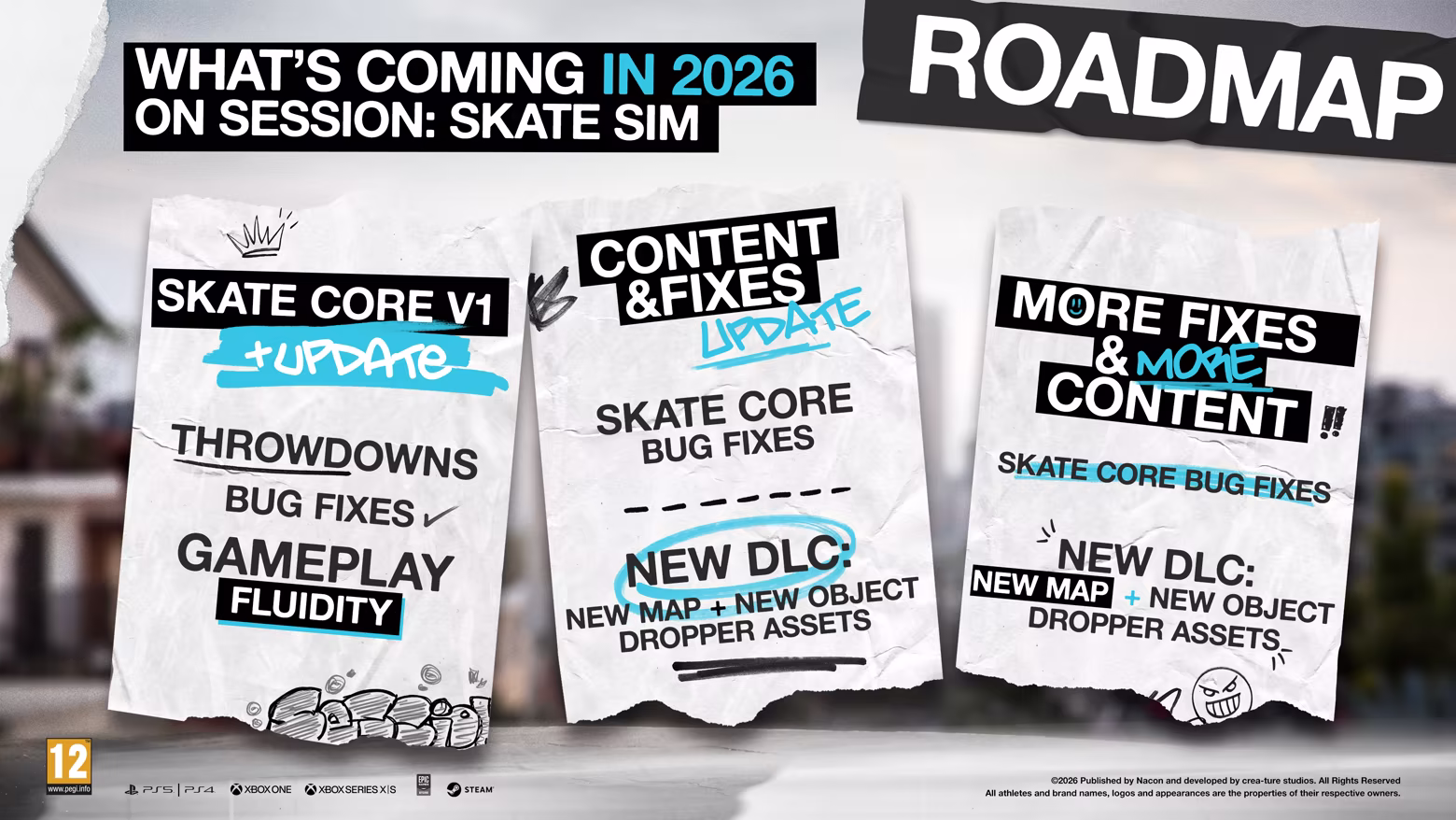 Inspired by the golden age of street skating – the 1990s – Session: Skate Sim lets you experience true skateboarding and its culture: no scoring system; just you, your spot and your imagination! There's no need for judges to tell you that your noseslide or varial heelflip are perfect for this spot. And because certain locations are iconic, the developers have added several of them to the game for you to skate in and express your creativity, including Black Hubbas (New York City), Brooklyn banks (New York City), FDR Park (Philadelphia) and many other spots.